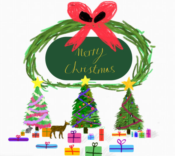 🥇 1st Place: Clara, Overdale Junior School, Year 4 A huge congratulations to Clara, whose design has been selected as the winner of the OAK Trust Christmas Card Competition 2025. Her artwork is wonderfully bright and colourful and carries a clear message of kindness, one of our core OAK Trust values and a perfect reflection of what Christmas is all about. The judges admired the beautiful glow around the tree and her creative use of the iPad to bring the design to life.